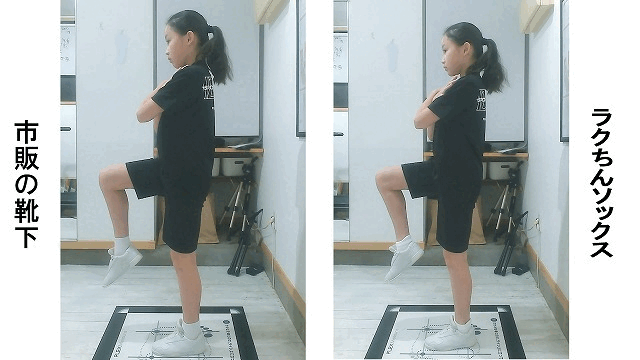 ラクちんソックスでは、下り坂での左右へのグラつき、横ブレの軽減が確認されています。