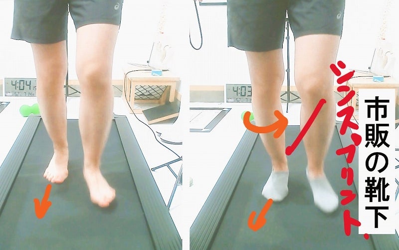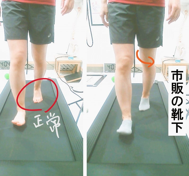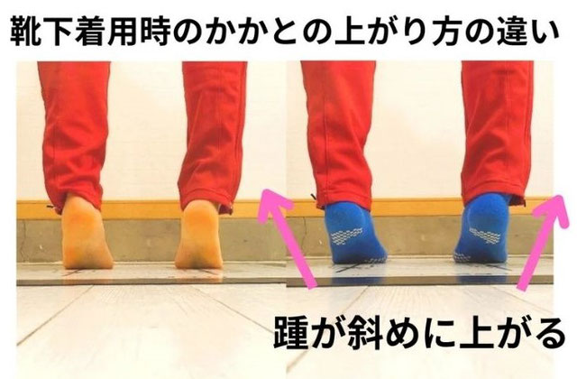 素足と靴下を履いたときで、