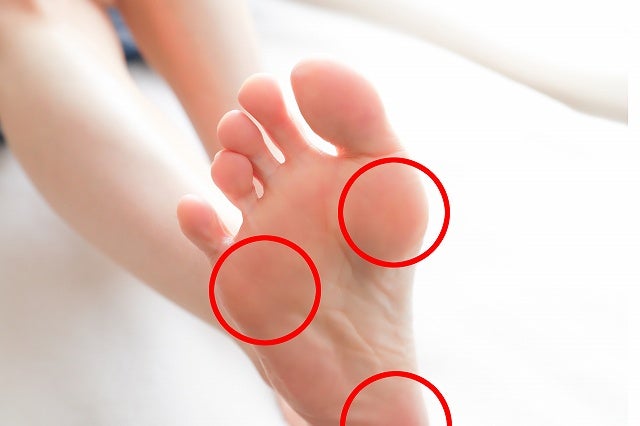 外反母趾、足の裏の痛み、くるぶしの痛み、スネの痛み、膝の痛み。